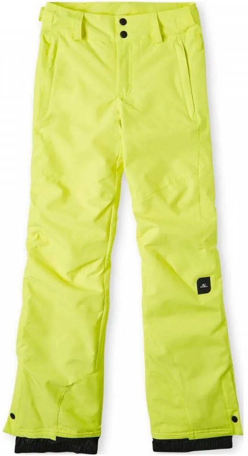 ONeill Charm ski broek voor meisjes in de kleur geel. Deze regular fit ski broek heeft een waterdichtheid en ademend vermogen van 10K, perfect voor avonturen in de sneeuw! De broek heeft een thermoplastische coating van polyurethaan en een voering van polyester. De ONeill Hyperdry technologie zorgt ervoor dat de stof ultra snel droogt en ademend, onder welke omstandigheden dan ook. De isolatie houdt warmte binnen en is lichtgewicht wat extra comfort biedt. Bovendien zijn de naden getapet. De broek is voorzien van een rits-, haak- en drukknoopsluiting en een verstelbare klittenband rond de taille. Bovendien is de voorkant voorzien van steekzakken met ritssluiting en de uiteinden van de pijpen hebben een sneeuw-/windstopper. Het item heeft reflecterende details, zo ben je extra goed zichtbaar op de piste! Let op! Om de waterdichtheid te behouden raden wij je aan jet artikel te wassen met een TECH wasmiddel. Dit artikel beschikt over een Grow System – Hierdoor is het mogelijk om het kledingstuk met je mee te laten groeien. Verwijder de rode draad in de voering en het kledingstuk “groeit” bijna één volledige kledingmaat. Zo heb je nog langer plezier van je favoriete kledingstuk.