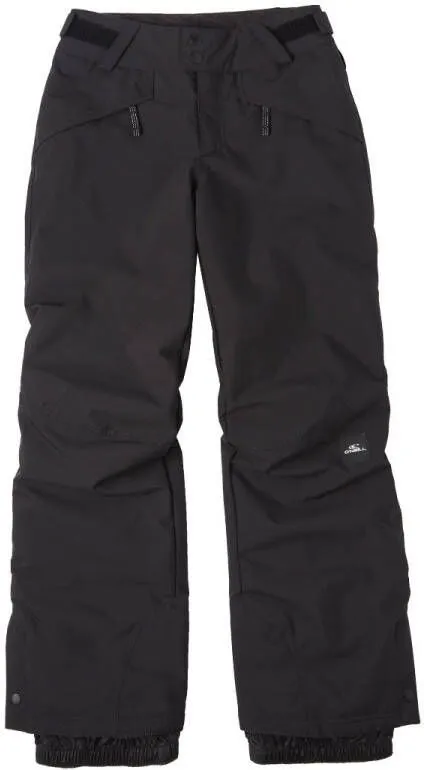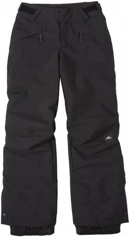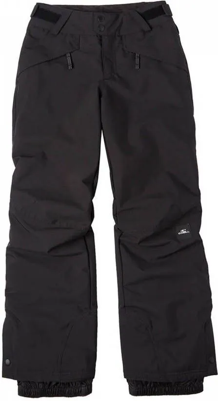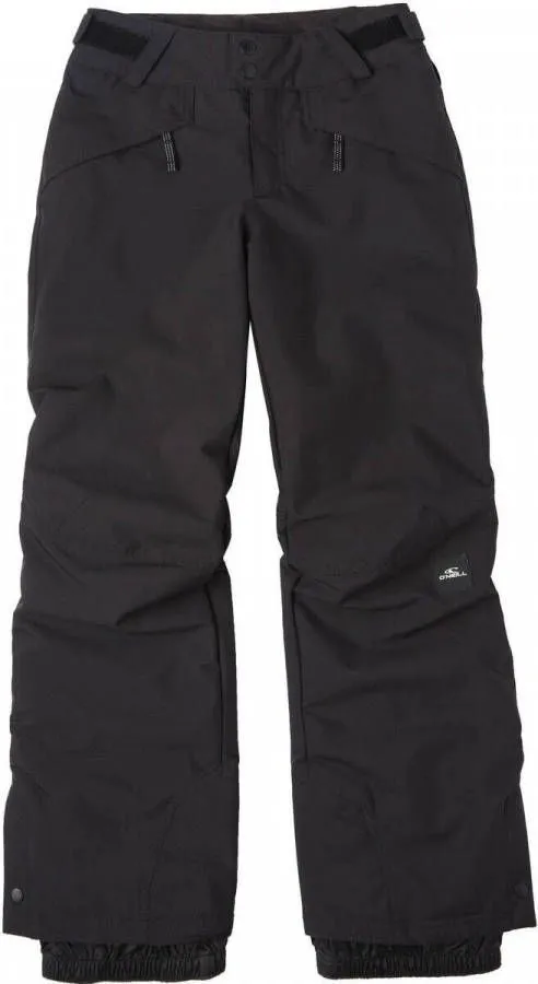 Specificaties: * Pasvorm: regular fit; met klittenband verstelbare taille * Waterdichtheid: waterdicht tot een waterkolom van 10.000mm; kritisch getapete naden * Temperatuurregeling: ademend vermogen van 10.000 g/m²/24u; 60 grams isolatie voor extra warmte * Zakken: twee zijzakken met ritssluiting * Sneeuwvanger: vaste sneeuwvangers in de broekspijpen * Kleur: zwart * Materiaal: 100% polyester (waarvan 45% gerecycled (REPREVE)) * Extra bijzonderheden: O’Neill Grow System; de zoom van de broek is verstevigd met schuurvast materiaal zodat de broek langer meegaat.