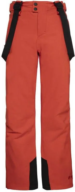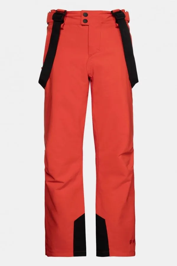 Specificaties: * Pasvorm: regular fit; de taille kan worden aangepast met klittenband; afneembare bretels * Waterdichtheid: waterdicht tot een waterkolom van 10.000 mm; waterafstotend materiaal; kritisch getapete naden * Temperatuurregeling: warm, ademend en vochtafvoerend materiaal; ademend vermogen van 10.000 g/m²/24u * Zakken: twee zijzakken met ritssluiting * Sneeuwvanger: op de tailleband zit een lus waar je de sneeuwvanger van je skijas aan kunt vastmaken * Kleur: rood * Materiaal: 100% polyester * Extra bijzonderheden: bij de enkels is de broek verstevigd met sterk Kevlar-materiaal om slijtage tegen te gaan.