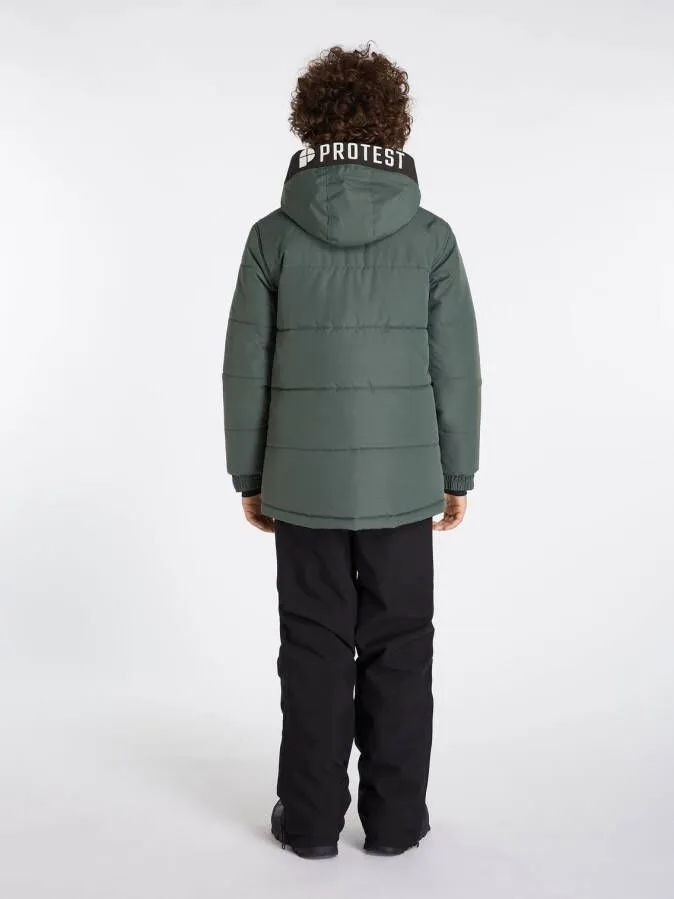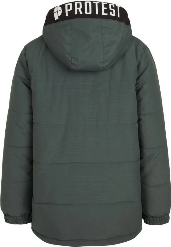 De Prtpeng Ski-jas Junior van Protest is een complete ski- en snowboardjas. PFC-vrij in de plaats daarvan is een milieuvriendelijke oplossing gebruikt om een waterdichtheid van 10.000 mm te bereiken. In combinatie met het 10 g ademend vermogen is de PRTPENG JR perfect voor al je avonturen in de sneeuw. Veel handige zakken. Een liftpashouder. De binnenmanchetten met duimgat zijn zowel comfortabel als praktisch. Bij de onderboord zit een handig trekkoordje dat je kunt gebruiken om de kou buiten te houden. De vaste capuchon en kraag zorgen ervoor dat je lekker warm blijft. De robuuste Protest-details op de ritsen, bij de onderboord en de capuchon voegen een coole, sportieve touch toe. De naden zijn niet getapet en kunnen bij langdurige regen of sneeuw doorlaten.