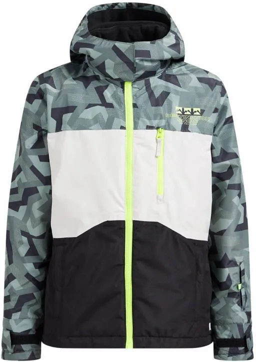 Een gewatteerd ski-jack van ademend materiaal dat warmte en vocht afvoert. Het jack heeft een fleecevoering, een ritssluiting met kinbeschermer, een borstzak en twee steekzakken. Het model heeft een capuchon met fleecevoering en klittenbandsluiting en lange mouwen met klittenband verstelling. De jas heeft een sneeuwvanger met knoopsluiting in de taille.